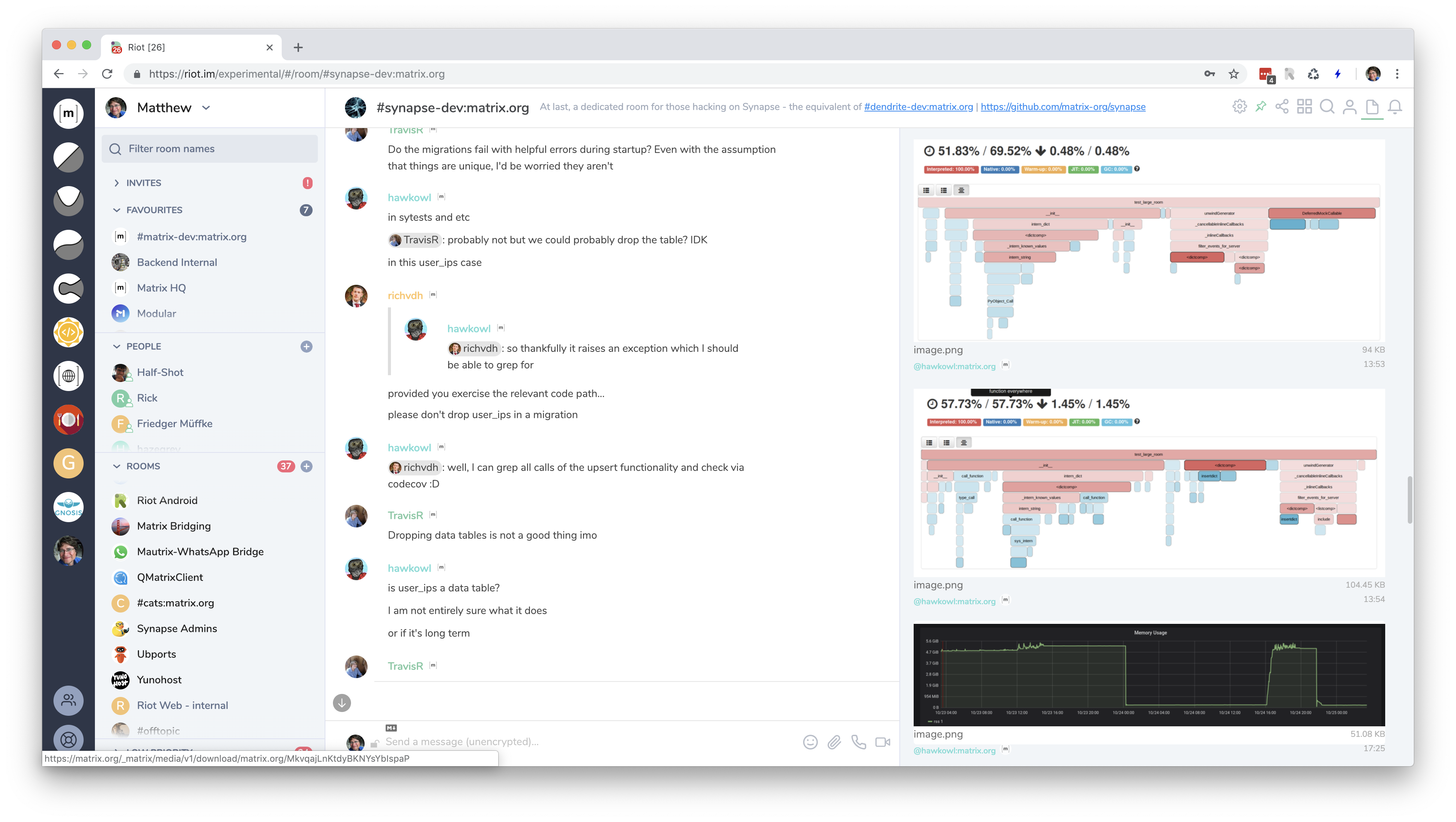 Firstly, some context about Matrix.org’s infrastructure. The public Matrix.org homeserver and its associated services runs across roughly 30 hosts, spanning the actual homeserver, its DBs, load balancers, intranet services, website, bridges, bots, integrations, video conferencing, CI, etc. We provide it as a free public service to the Matrix ecosystem to help bootstrap the network and make life easier for first-time users.