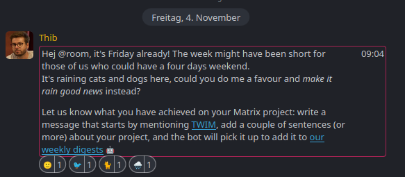 04.11.2022 19:27 β This Week in Matrix β ThibMatrix Live