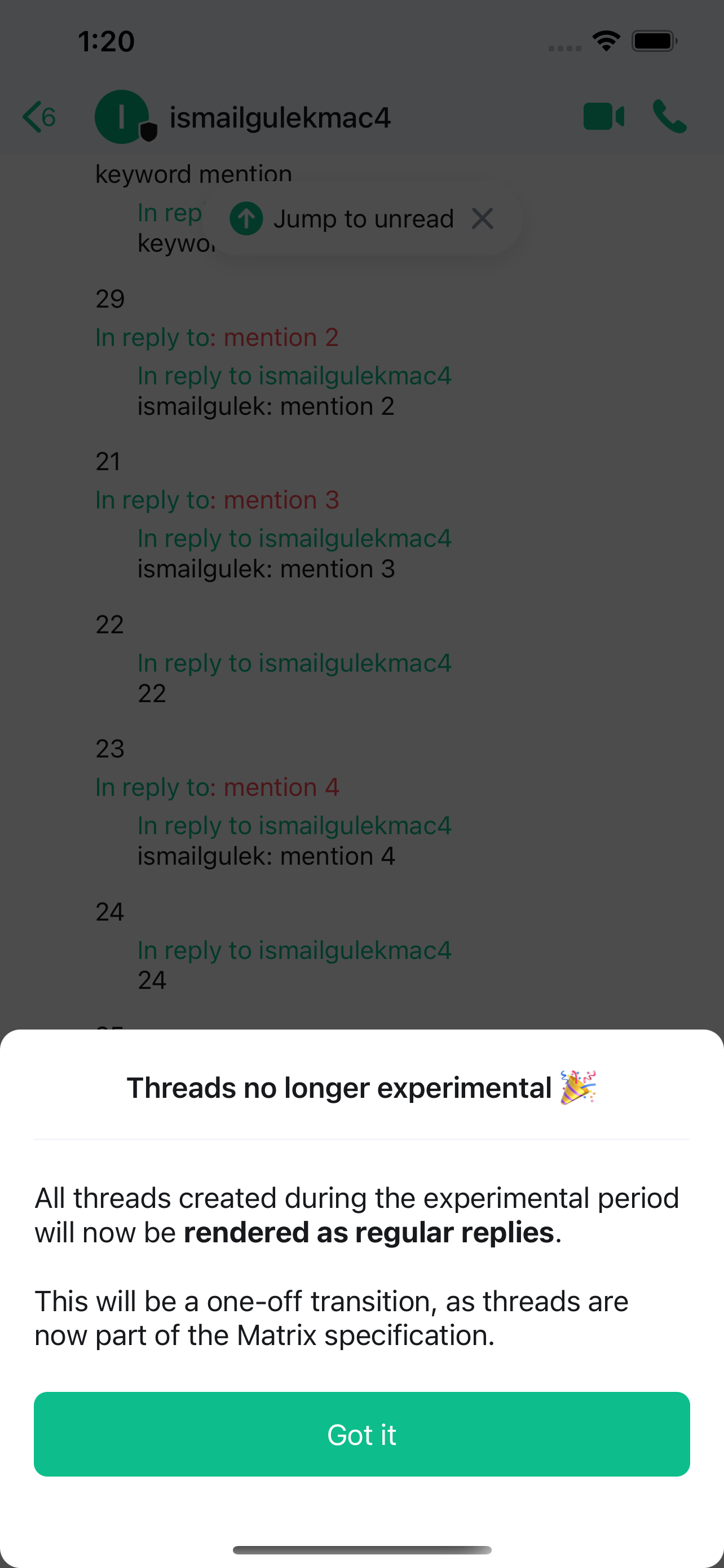 - MSC3771: Read receipts for threads