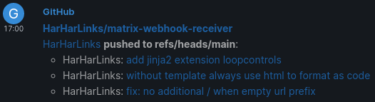 An add-on for the matrix-appservice-webhooks bridge. Webhooks are essentially web interfaces for applications to "push" data to. The bridge can receive messages in a certain format, which is nice if the notifying app can be configured. Often it cannot.